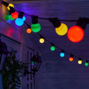 | Дополнительно: | | | Сечение провода, мм2: 2х0,5, Максимальная мощность нагрузки: 800Вт, Уплотнительные кольца на патронах Е27 обеспечивают степень защиты от пыли и влаги IP65 при вкрученной лампе с цоколем Е27. Внимание! Гирлянда BELT-LIGHT не является самонесущей. Для установки необходимо использовать несущий трос. |