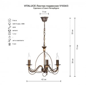 | Характеристики |  | Источник света: | | Лампа: | 3 шт. с цоколем E14 |