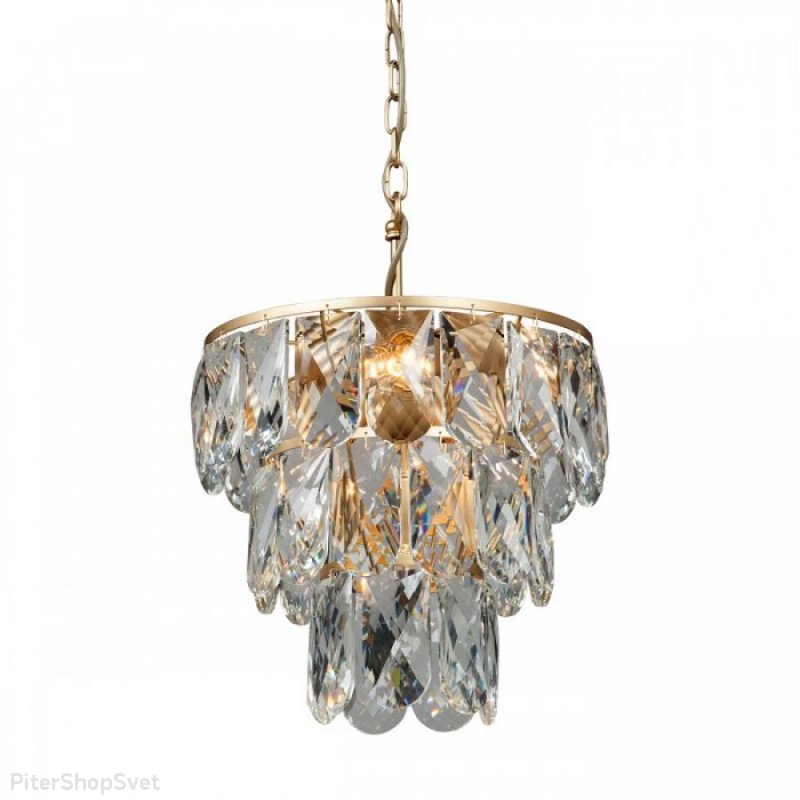 | Внешний вид: | | | Размеры: | высота: 65-108 см, диаметр: 36 см | | Материалы: | металл, хрустальное стекло | | Цвета: | золотой, прозрачный |
