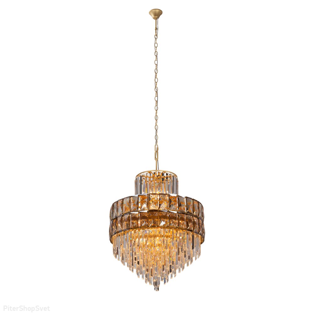 | Внешний вид: | | | Размеры: | высота: 120-229 см, диаметр: 68 см, цепь: 122 см | | Материалы: | металл, стекло | | Цвета: | золотой, янтарный, прозрачный |